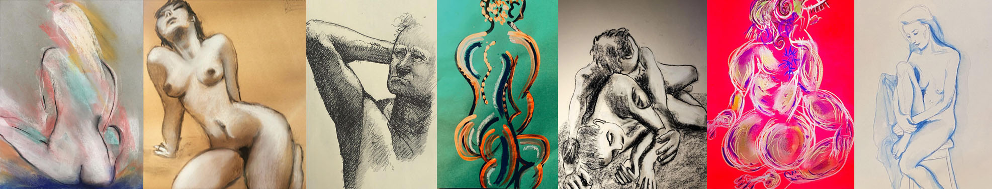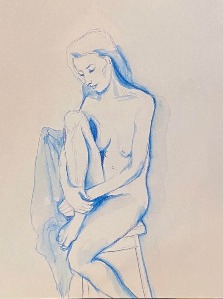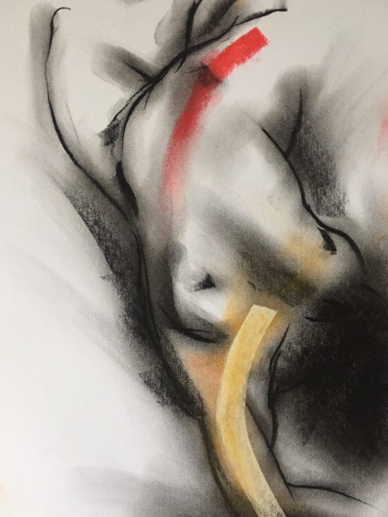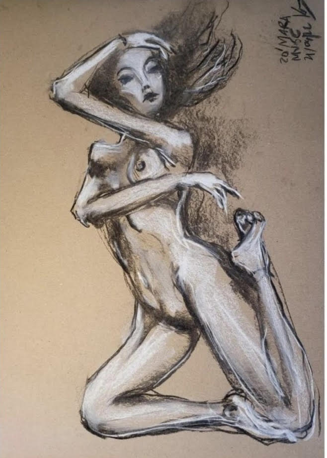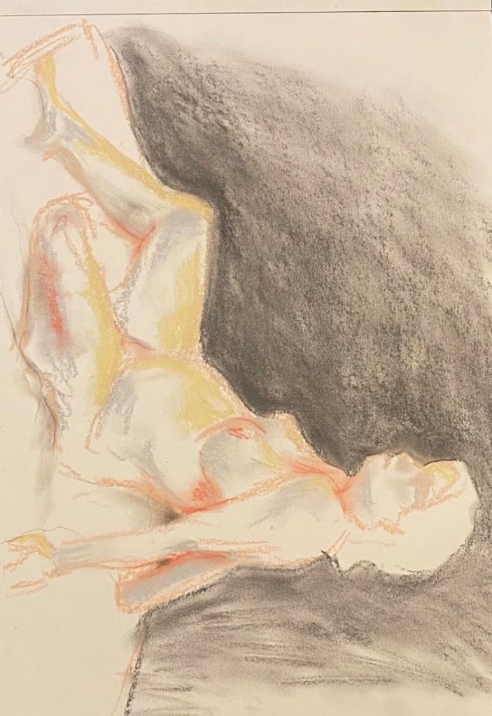 Luminous Bodies is also a celebration of two years of online life drawing classes featuring international models from Argentina, the UK, the Czech Republic, Russia, Spain, and Australia. The COVID pandemic, paradoxically, created a virtual space where life drawing experienced a renaissance, bringing people together in a virtual creative space.