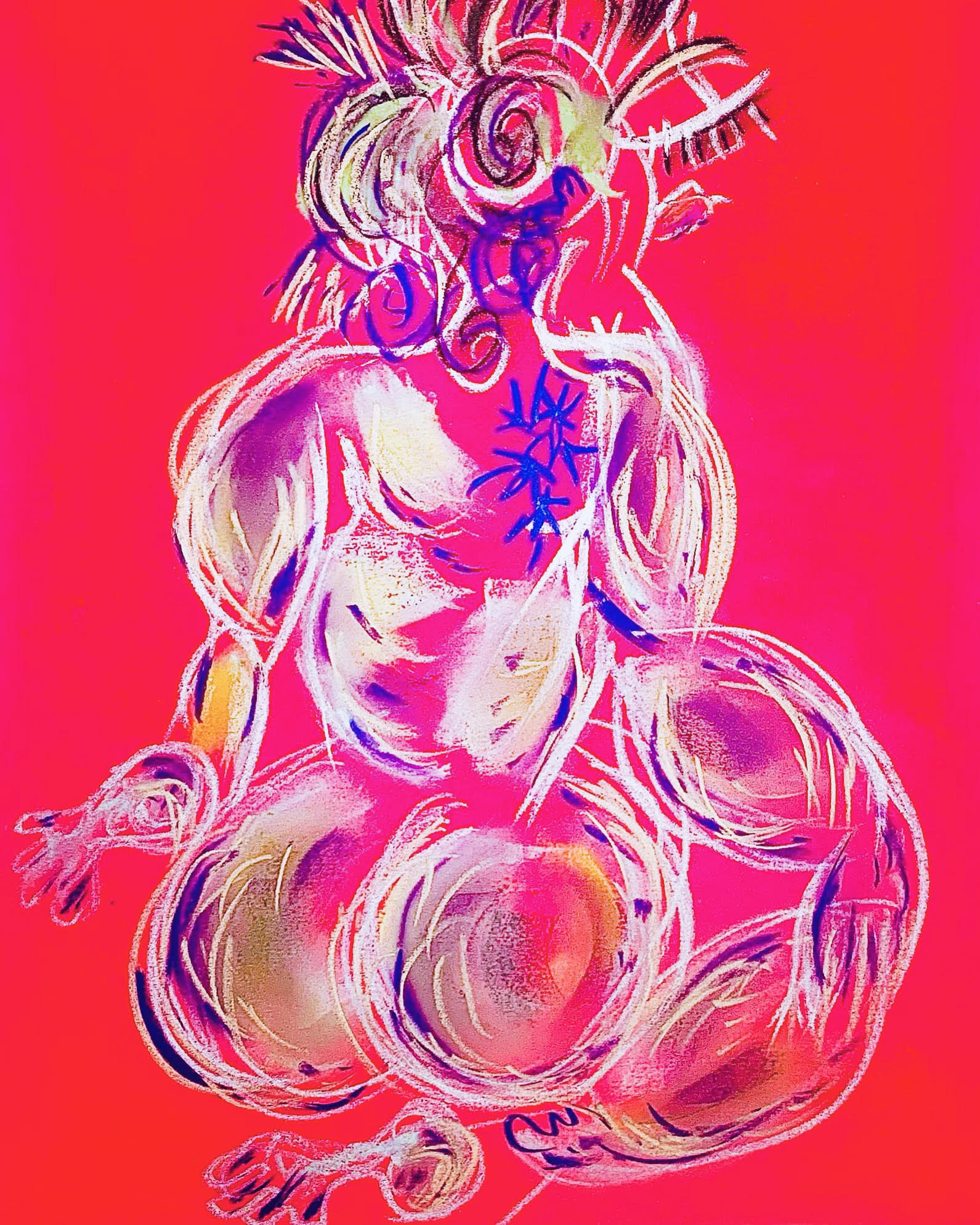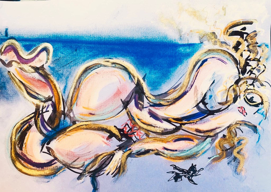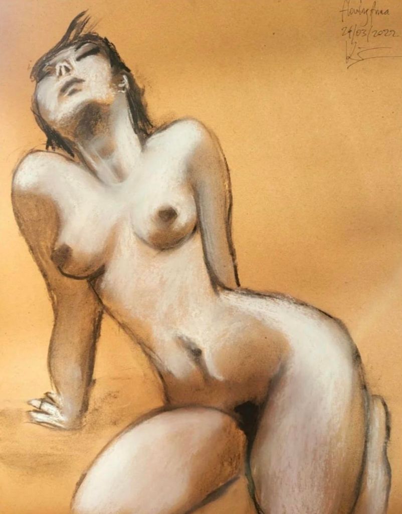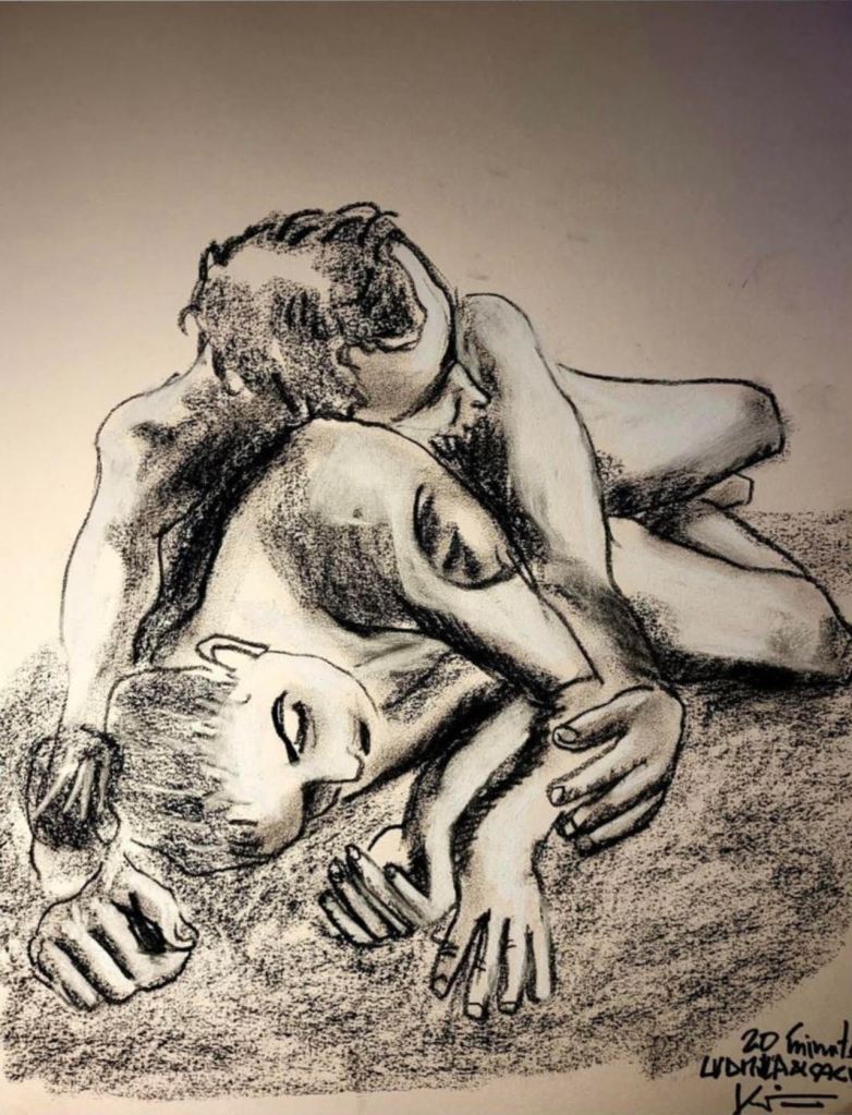 Luminous Bodies is also a celebration of two years of online life drawing classes featuring international models from Argentina, the UK, the Czech Republic, Russia, Spain, and Australia. The COVID pandemic, paradoxically, created a virtual space where life drawing experienced a renaissance, bringing people together in a virtual creative space.